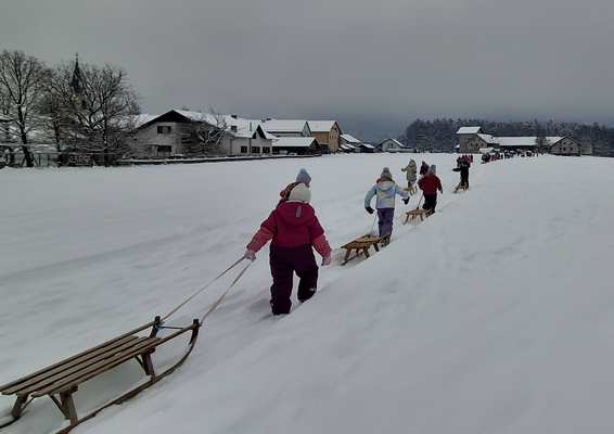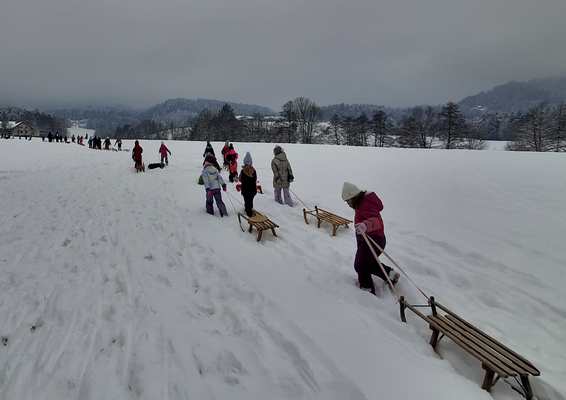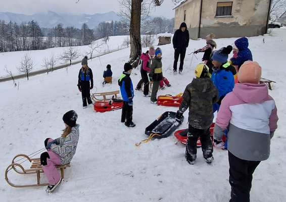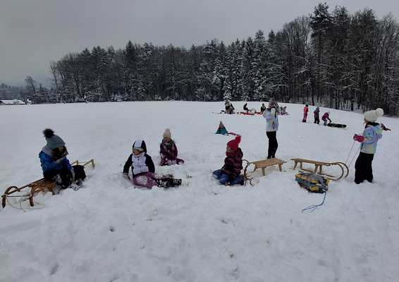 Naslednji dan smo nadaljevali z že vrsto let dobro utečeno prakso. Športni dan je med učenci vedno zelo priljubljen, saj se ga z veseljem udeležijo, kadar nas zima razveseli z zadostno snežno odejo. Tretjina prvošolcev se je sankala prvič.