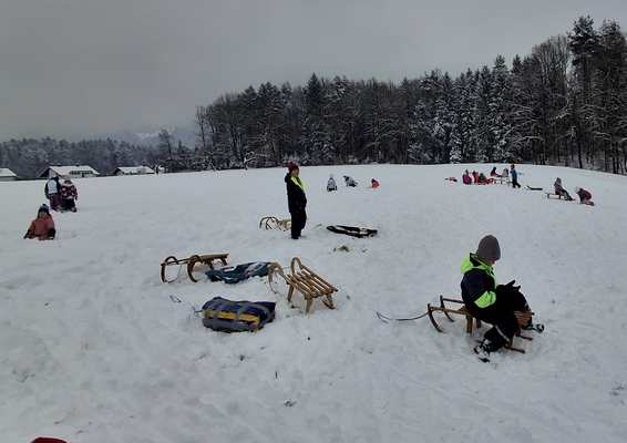 Zahvaljujemo se družini Sirše, ki vedno odprto deli zasnežen hrib za sankanje.