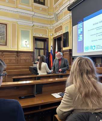 “V četrtek, 11. 12. 2025, sem se udeležila podelitve nagrad v Mestni hiši Mestne občine Ljubljana za najboljša likovna in literarna dela na temo človekovih pravic in umetne inteligence. Napisala sem esej z naslovom Je umetna inteligenca naš prijatelj ali sovražnik? Pisala sem o tem, kje nam umetna inteligenca pomaga, kje pa nam škoduje. Pozdravni govor je imel prof. dr. Bojko Bučar, glavna govornica pa je bila gospa Vesna Humar iz Urada Vlade RS za Slovence v zamejstvu in po svetu, ki je govorila o pogojih ljudi, ki imajo zelo malo ali nič človekovih pravic. Po govoru ge. Humar je sledilo podeljevanje nagrad. Bili smo štirje nagrajenci iz cele Slovenije, ki smo bili razdeljeni v 3 skupine: osnovnošolci, srednješolci ter odrasli do 27 let. Po podelitvi je sledila še manjša pogostitev.”
