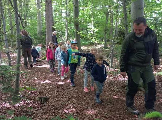 Polni novih doživetij in občutkov smo se poslovili od gozdarjev in se odpravili v vrtec. Gozdarjem Janezu, Jožetu in Špeli se najlepše zahvaljujemo za sodelovanje in že komaj čakamo na nove gozdne dogodivščine.