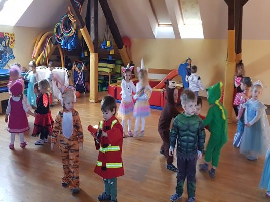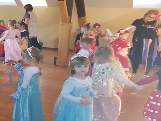 V petek smo v športni dvorani pripravili pravo pustno rajanje, medtem ko so najmlajši otroci imeli zabavo v igralnici. Ob glasbi so plesale vse maškare. Pustno rajanje v športni dvorani je vključevalo plesne igre, kjer so otroci ob glasbi izvajali različne plesne korake in se zabavali ob ritmih pustnih pesmi. Najmlajši otroci so imeli svojo zabavo v igralnici, kjer so se igrali z baloni, risali pustne motive in se sladkali s pustnimi dobrotami.