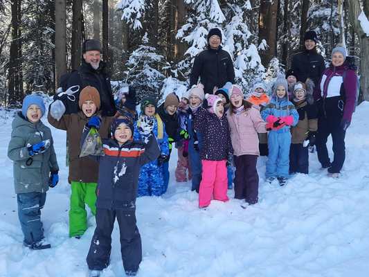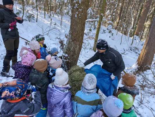 Zima je končno poskrbela za svoj pravi izgled in se odela v prelepo zimsko idilo. Prav to smo krožek Gozdni škrati izkoristili in se podali v gozd. Škrati pozimi vedno poskrbimo za gozdne živali, zato smo s sabo vzeli kar nekaj dobrot, nekaj pa so s sabo prinesli tudi naši gozdarji.