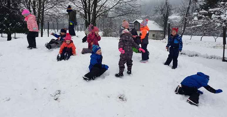 Pripravili smo si skupen dogodek na Gorici, kjer so se vse skupine vrtca, ki sodelujejo v tem projektu, skupaj dričale, si privoščile čaj in se ob glasbi zabavale s snegom.