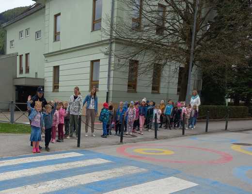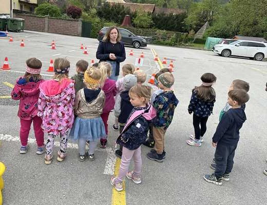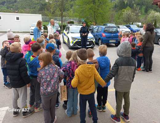 Prometno znanje, ki smo ga skozi celo leto nadgrajevali z različnimi dejavnostmi smo v mesecu aprilu utrdili s praktičnimi delavnicami. Najprej nas je obiskala policistka ga. Aleksandra Marič iz PP Žalec. Otrokom je približala poklic policista ter skupaj z njimi obnovila pravila prometne varnosti. Poudarila je, kako pomembno je, da smo v avtomobilu vedno pripeti z varnostnim pasom in da se v prometu vedemo odgovorno ter upoštevamo prometna pravila. Slednje je preverila s pravilnim prečkanjem ceste. Otroci so v parih oz. skupini pokazali, kako se pravilno prečka cesto. Za poseben vtis pa je poskrbela policijska sirena in lučke, ki so jih otroci lahko videli in slišali čisto od blizu. Za poučno predstavitev se ji prijazno zahvaljujemo.