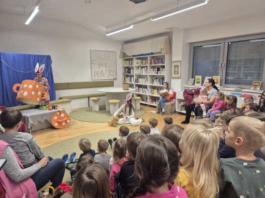Zadnji ponedeljek pred prazniki smo bili povabljeni v šolsko knjižnico, kjer so nam petošolke skupaj s knjižničarko Katjo zaigrale predstavo Skuhaj mi pravljico (avtorice Majde Koren). Otroci so z zanimanjem spremljali »kuhanje« pravljice. Zadnji dan pred prazniki pa smo se zopet zbrali v večnamenskem prostoru, kjer smo imeli predbožično zabavo s prazničnimi motivi in glasbo, ob kateri smo plesali, se družili in se veselili. Praznovanje smo zaključili z animirano risanko in sveže pečenimi kokicami. Dočakali smo pa tudi čarobni trenutek, ki smo ga vsi dolgo čakali, začelo je snežiti.