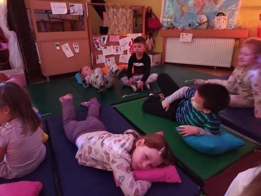 V tretjem prazničnem tednu nas je čakal prav poseben nastop. Izvedli smo obogatitveni dan »Pokaži, kaj znaš«, kjer se je vsaka skupina predstavila s svojo točko. Ves teden je po vrtcu dišalo po piškotih, pici, vafljih in ostalih prazničnih dobrotah. Teden smo zaključili z zabavo v pižamah. Za tiste, ki so si zaželeli umirjenega vzdušja, smo pripravili sprostitveni kotiček, kjer so otroci ob soju sveč, lučk in umirjene glasbe lahko sprostili svoja telesa.