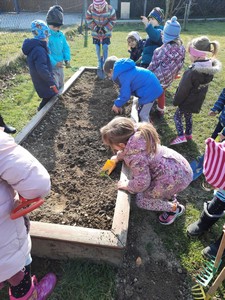 Pomlad je mesec, ki nas privabi v naravo in z njo povezana opravila na vrtu. Tudi v vrtcu Vransko imamo na igrišču svoj vrtiček, za katerega skrbijo otroci s pomočjo vzgojiteljic. Da pa smo ga lahko spomladi začeli obdelovati, smo morali jeseni najprej pobrati iz njega vse pridelke, ki so še ostali od poletja. Ker nas kar nekaj mesecev vmes ni bilo, upamo, da si je zemlja odpočila, saj mi v vrtcu že pridno skrbimo in pripravljamo semena in vzgajamo sadike, da bomo takoj, ko bodo temperature ugodne, sadike presadili na naš vrt. Izkušnje, ki si jih ob tem pridobijo otroci, so nenadomestljive. Prav tako skrb za vse, kar nam zraste na vrtu. Pa tudi, če kdaj kaj ne uspe. Nič zato, bomo naslednjič poskusili kaj spremeniti.