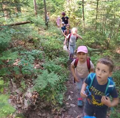 Petek, 26. maj je bil za otroke skupine 5-6 let zelo vznemirljiv dan. Popoldne smo se skupaj z vodnikom Petrom odpravili na Zajčevo kočo. Ta dan res nestrpno pričakujejo. In od vsega si najbolj želijo, da bodo lahko šli spat.