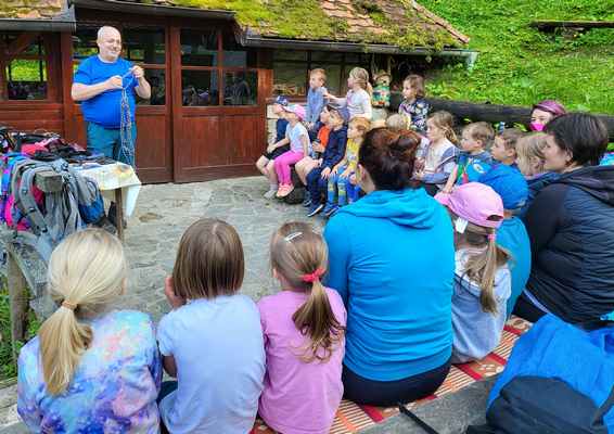 V petek so otroci skupaj z vodniki prehodili pot iz Lok na Šekovarja do Zajčeve koče. Ob prihodu pa jim je vodnik Peter pokazal še različne planinske pripomočke. Sledila je malica, ki so jo nestrpno pričakovali. Malico si otroci prinesejo s seboj, kamor ujamejo tudi trenutke in vonje doma.
