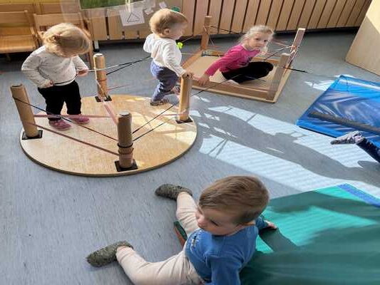 Otroci so se v igri preizkušali v različnih oblikah, kot so simbolna, domišljijska, ustvarjalna in konstrukcijska igra. Na hodniku in stopnišču so bile pripravljene tudi gibalne dejavnosti z elementi NTC pristopa in FIT hodnika.