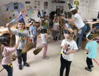 V tem šolskem letu smo obogatitveno dejavnost Plesni škratki izvajali v oddelkih 3-4 in 4-5 let. Plesne urice smo popestrili z udarno glasbo, z zgodbo in literarnim likom Ostržek in si izdelali lesene lutke, "oživeli".