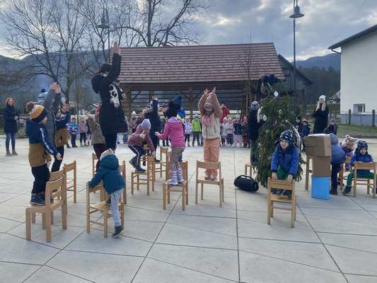 Decembrski direndaj v vrtcu Tabor se je začel z nastopom vseh oddelkov na Jurijevem trgu, kjer so otroci s pesmijo, gibanjem in veseljem pričarali pravo praznično vzdušje. Skupni nastop je bil čudovit uvod v mesec, poln doživetij, ustvarjalnosti in medsebojnega povezovanja.