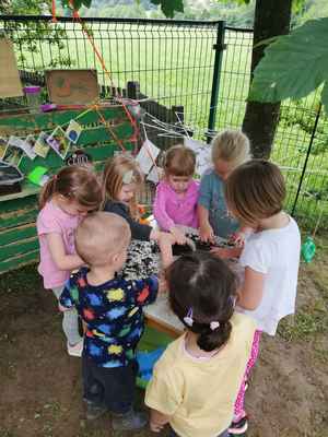 V vrtcu si prizadevamo, da otroci preživijo veliko časa v naravi, spodbujamo in usmerjamo jih k zdravemu življenjskemu, razvoju. Ustvarjamo spodbudno učno okolje hkrati razvijamo občutek pripadnosti in spodbude. Tako smo si v teh toplejših dneh igrišče in vsakdan popestrili z glasbenim in raziskovalnim kotičkom. Poudarek je na pridobivanju izkušenj z izdelavo in uporabo kotička. S pridobivanjem izkušenj z živimi bitji, zanimanjem, odkrivanjem in veseljem ob raziskovanju.