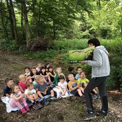 Prav tako pomembno pa je, da čim več časa preživimo v naravi, zato smo tudi v letošnjem šolskem letu pripovedovanje in branje popeljali v naravo, v mirne kotičke gozda ali travnika, v gosto senco krošenj, med ptičje petje…