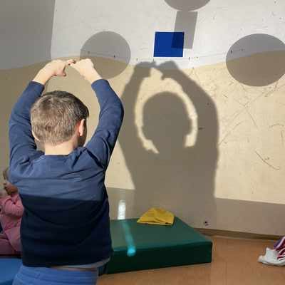 Igrali smo se, metali kocko gibali glede na število pik in s telesi ponazarjali like, postavljali smo telesa v razne položaje. Z liki smo se seznanjali, jih opisovali, klasificirali. S prsti smo jih obrisovali, šteli kote. Se igrali s svojo senco, polagali pare likov na grafoskop, opazovali, obrisovali, dokončal. Polnili, praznili in prenašali smo mivko, govorili in evalvirali. Naredili smo matematični zapis s pomočjo drevesnega diagrama.
