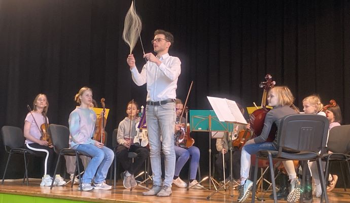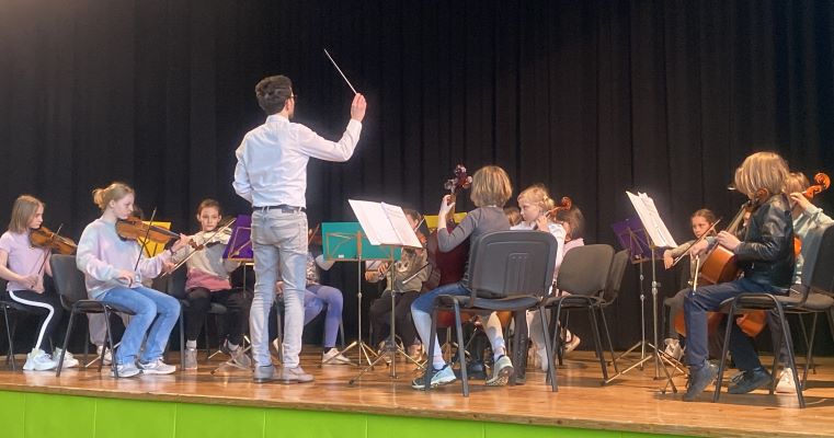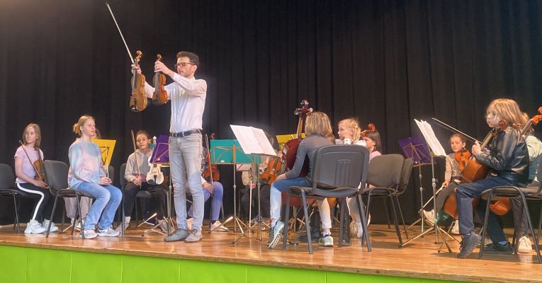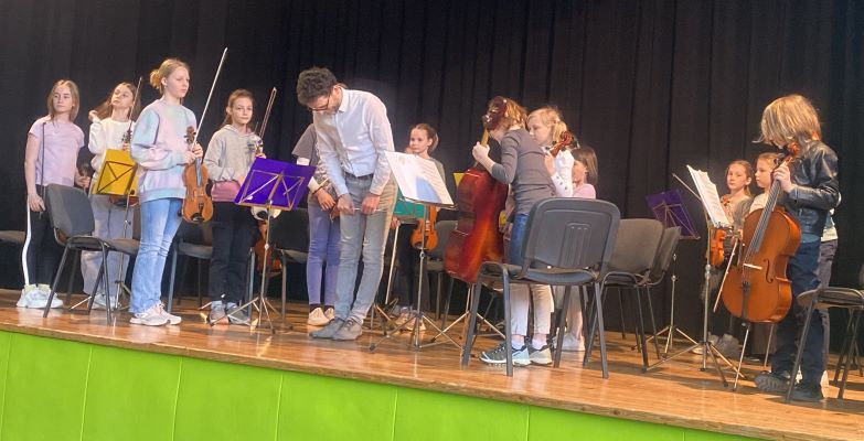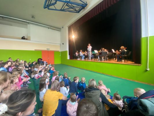 Z umetnostjo se otroci v vrtcu veliko srečujejo, le redko pa imamo možnost instrumentalno glasbo poslušati v živo. Tako smo v mesecu marcu doživeli pravi koncert. Obiskali so nas učenci godalnega orkestra glasbene šole Risto Savin Žalec. Predstavili so nam violino, violončelo in kontrabas. Dirigent, g.Slakan, pa nam je glasbila še predstavil. Ob koncu smo ob spremljavi godalnega orkestra tudi zapeli.