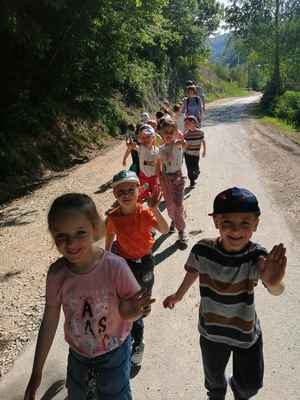 Najmlajši planinci so iz vrtca, kjer ob podpori Planinskega društva Tabor letno izvedemo pet pohodov. Eden izmed letošnjih je bil prav posebno doživetje, saj smo se s kombijem odpeljali do Liboj, kjer smo pot nadaljevali v smeri Pongraca. Prijetno pomladno sonce nas je spodbujalo, da smo premagali hrib in se zadovoljni spustili v dolino. Na vrhu smo obiskali našo prijateljico Zoja in tako spoznali, od kod vse prihajamo. Vrnili smo se v smeri Zabukovice, kjer nas je čakal kombi in nas varno pripeljal v vrtec.