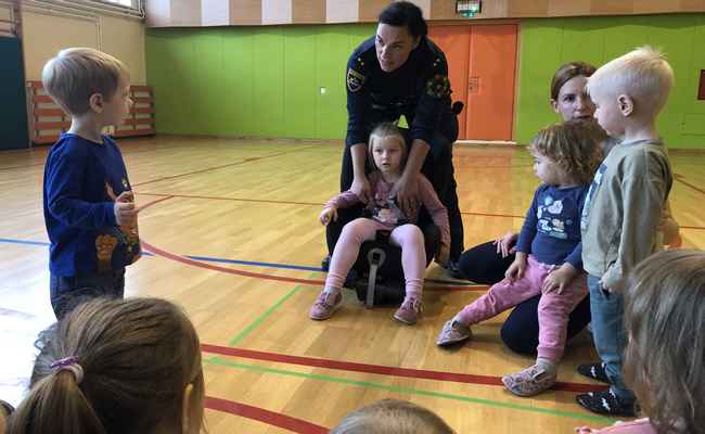 Govorila je o pomembnosti uporabe varnostnega pasu in z uporabo otroškega avto sedeža nazorno demonstrirala pravilno uporabo le-tega. Pri tem pa poudarila, kako s tem zaščitimo svoje zdravje in življenje v primeru morebitne nesreče. Za poseben vtis je poskrbela policijska sirena, ki so jo otroci imeli priložnost slišati od blizu. Glas sirene je vzbudil veliko zanimanja in radovednosti, saj je otrokom omogočil vpogled v opremo, ki jo policisti uporabljajo pri svojem delu. Otroci so ob obisku aktivno sodelovali, postavljali vprašanja in delili svoja razmišljanja. Po predstavitvi so svoje znanje in veščine preizkusili na gibalnem poligonu. Spretno so premagovali različne ovire ter krepili pravilno in varno gibanje v različnih situacijah.