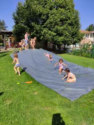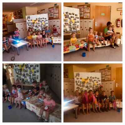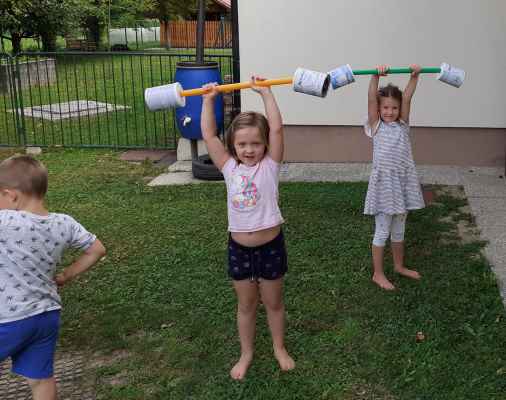 V poletnih mesecih smo strokovni delavci izkoristili prednost letnega časa za pestre dejavnosti, ki jih sicer ne moremo izvajati. Izhodišče za delo nam je vedno dobro počutje otrok, upoštevanje otrokovih interesov in želja ter skrb za varnost. Večino dejavnosti smo izvajali na prostem, prav tako tudi sprejemanje in oddajanje otrok. Dejavnosti, ki smo jih letos izvajali, so bile večinoma vezane na aktualna dogodka – olimpijske in paraolimpijske igre. V sklopu olimpijskih iger smo preko igre spoznali veslanje, plavanje, dviganje uteži, plezanje, košarka, tek, streljanje, met kopja, borilne veščine … Otroke smo seznanili z navijanjem, našimi državnimi simboli in simbolom olimpijskih iger. Seznanili smo se tudi s paraolimpijskimi igrami, katere so nam bile podlaga za pogovor o sprejemanju drugačnosti in kasneje dejavnosti, preko katerih so otroci spoznavali, kako težko je, če ne moreš uporabljati oči, ušes, rok ipd. (slikanje z zavezanimi očmi, z nogo …). Poleg aktualnih vsebin, so otroci spoznavali tudi, kako se pošlje razglednica, igre z lutko, igre z vodo, obilje pravljic in in še in še!