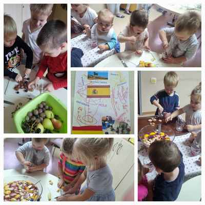 Govorili smo o Španiji, barvali zastavo, plesno poustvarjali ob španski glasbi, krepili fino motoriko in ob španskih ritmih rezali različno sadje ter okušali otroško Sangrijo. »Obiskali« Italijo, se likovno udejstvovali – izdelali matematično pico, oblikovali iz das mase in govorili o Italiji.
