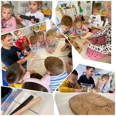 V drugem delu, t.i. delavnici »Lesni detektiv« so otroci odkrivali in spoznavali les prek tipanja in raziskovanja različnih vrst, oblik lesa – od drevesnega koluta do lesnih ostružkov. Ugotovili so, da so drevesa zelo pomembna saj nam poleti nudijo senco, so dom živalim in nam čistijo zrak, nenazadnje jih lahko predelamo v kos pohištva ali pa razrežemo v drva, izdelamo sekance, pelete za kurjavo. Zelo zanimiv in poučen je bil tudi eksperiment, kjer smo spoznali ali les plava ali ne.