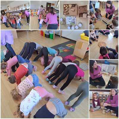 V zadnjem delu smo se razgibali z Arhitekturno jogo. S svojimi telesi so otroci ponazorili različne arhitekturne elemente kot so most, steber.