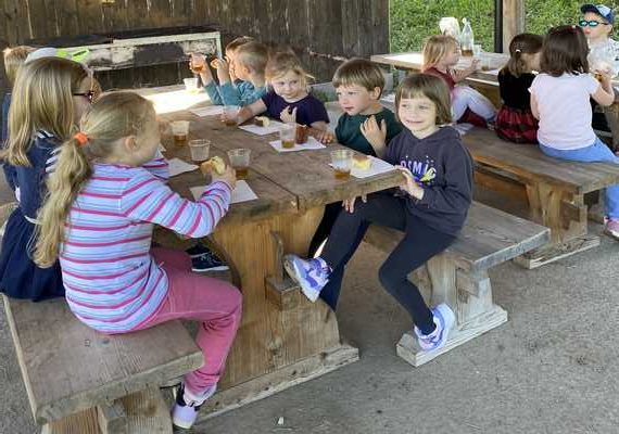 Na sončno jutro smo že pred zajtrkom napolnili nahrbtnike in se skupaj odpravili proti igrišču Razgan. Tam smo si najprej privoščili krepčilen zajtrk pod nadstreškom, nato pa je sledilo razgibano dopoldne.