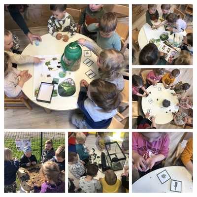 Skupaj smo izvedli poskus: nabrali in posadili smo semena želoda in žira, jih skrbno zalivali, negovali ter jih čez nekaj mesecev presadili v bližnji gozd. Otroci so spoznavali osnovne dele rastlin in pogoje za njihovo rast. Z daljšim pohodom in zasaditvijo mladega hrasta, smo obeležili mednarodni dan gozdov ter simbolno prispevali k ozelenjevanju našega planeta. Poseben poudarek smo namenili spoznavanju biotske pestrosti. Pogovarjali smo se o vremenu, vremenskih pojavih, vodi in pomembnosti varčevanja z naravnimi viri. Eksperimentirali smo z vodo – ustvarili mavrico, oblak v kozarcu ter spoznali kroženje vode v naravi. Na terenu smo očistili brežino bližnjega potoka Konjščica, raziskovali njegovo strugo in življenje ob vodi. Spoznavali smo prst in njene prebivalce, pomen in njihovo vlogo. Odkrivali življenjski cikel deževnika, žabe, metulja in želve. Ustanovili smo naravoslovni kotiček, kjer domujejo paličnjaki, in tako omogočili neposreden stik z živimi bitji.