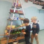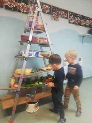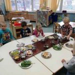 Pogovarjali smo se tudi o zdravem načinu življenja. Naredili smo si domačo skuto in iz nje spekli jabolčni zavitek ter skuhali jabolčni kompot. Delali smo mavrične smutije, imeli medeni zajtrk, dodobra pa smo spoznali tudi prehransko piramido.