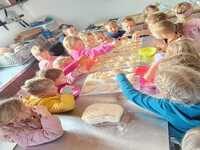 Otroci oddelka 5–6 iz vrtca Tabor so skozi pravljico Volk in sedem kozličkov stopili v pristni svet življenja na kmetiji in peke kruha. Obiskali so kmetiji Slapar in Malik, kjer so opazovali živali, prejeli koruzne storže ter izvedeli marsikaj o delu kmeta. V vrtcu so koruzo luščili, meli z mlinčki in raziskovali pot zrna do moke, nato pa doživeli še nepozaben obisk pri peku, g. Jaki Zupančiču. Tam so otroci gnetli testo, oblikovali svoje pekovske izdelke in spremljali, kako se v peči spremeni njihovo delo.