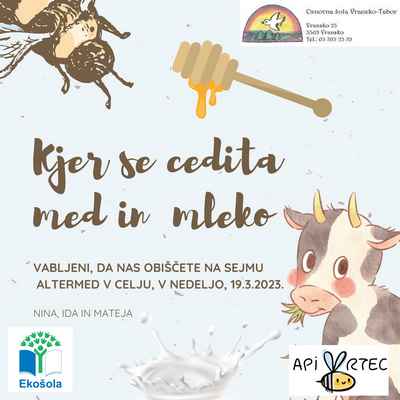 Vrtec Tabor se letos udeležuje sejma Altemed v Celju. Predstavili bomo aktivnosti otrok pod naslovom Kjer se cedita med in mleko.